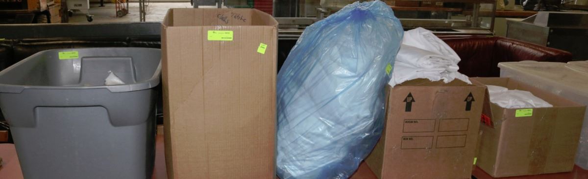 THREE BOXES, ONE BAG, & ONE TOTE OF TABLE COTHS