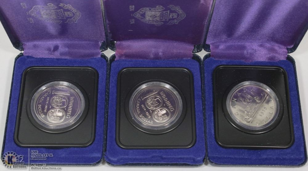 THREE CANADIAN ONE DOLLAR COINS INCL 1975,
