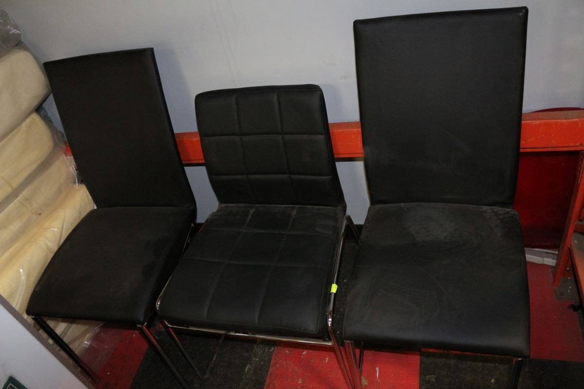 THREE CHROME AND LEATHERETTE SIDE CHAIRS