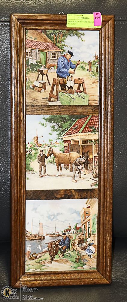 THREE DUTCH SCENE TILES FRAMED PICTURE