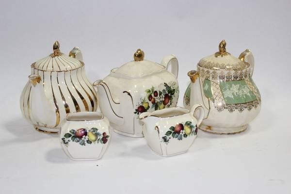 THREE ENGLISH TEA POTS WITH SUGAR/CREAMER