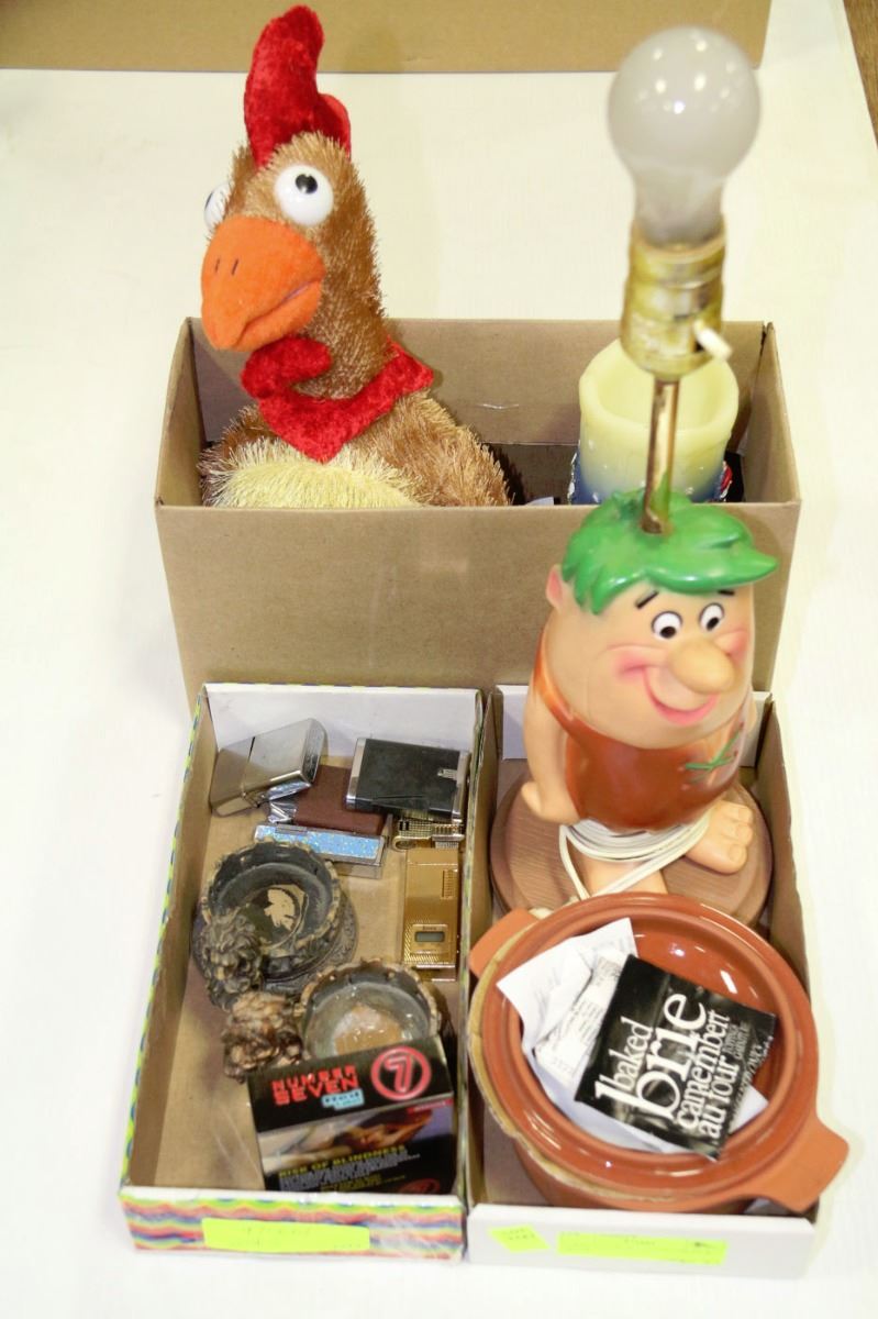 INCLUDES FLINSTONES LAMP, ASHTRAYS, LIGHTERS, ANIMATED CHOKING CHICKEN, BAKED BRIE KIT & MORE