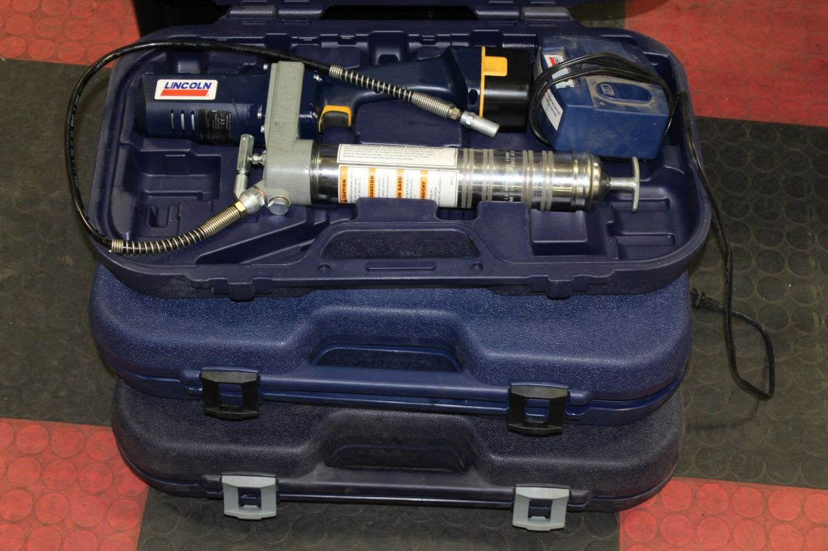 THREE GREASE GUNS IN CASE - ONE 12V & TWO 18V