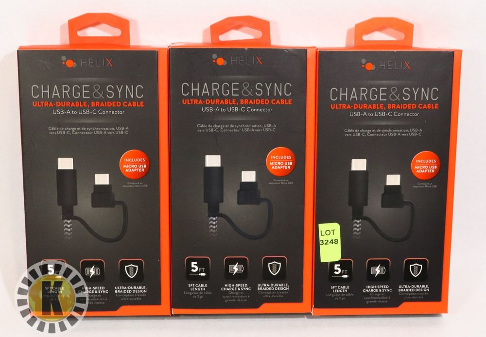 THREE HELIX CHARGE AND SYNC BRAIDED CABLES