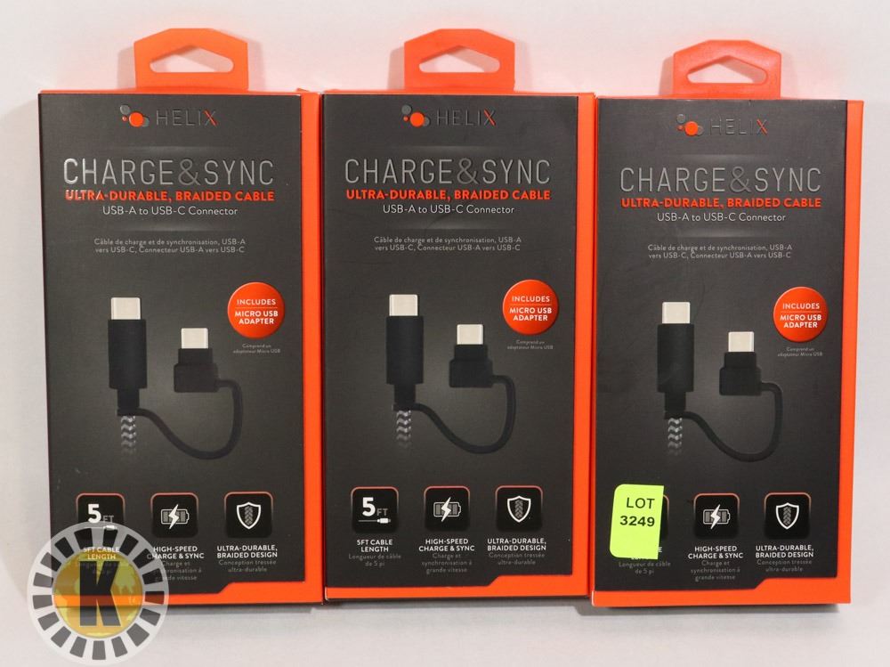 THREE HELIX CHARGE AND SYNC BRAIDED CABLES