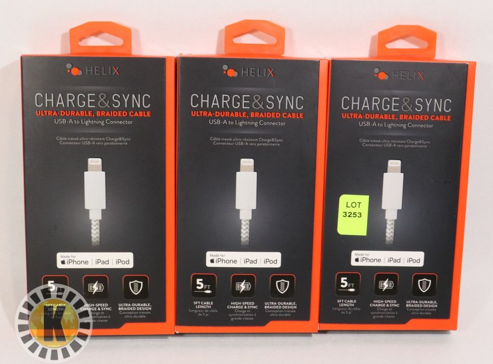 THREE HELIX CHARGE AND SYNC BRAIDED CABLES