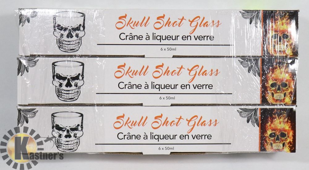 THREE NEW 6 X 50ml SKULL SHOT GLASSES SETS