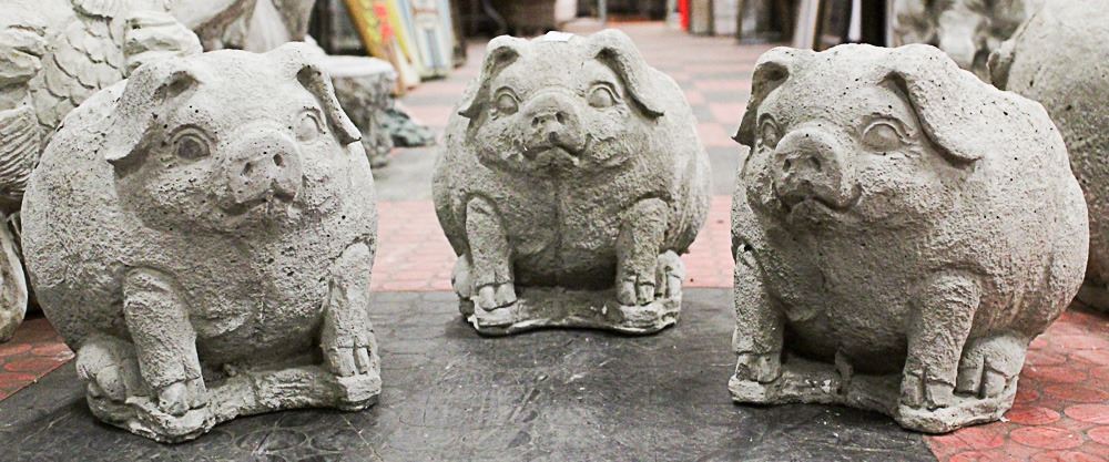 THREE OF CONCRETE PIG 8 INCH TALL PLANTER STATUES