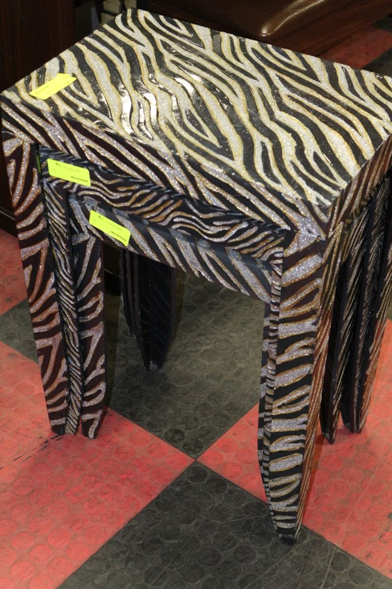 THREE PIECE ZEBRA PRINT NESTING TABLE SET