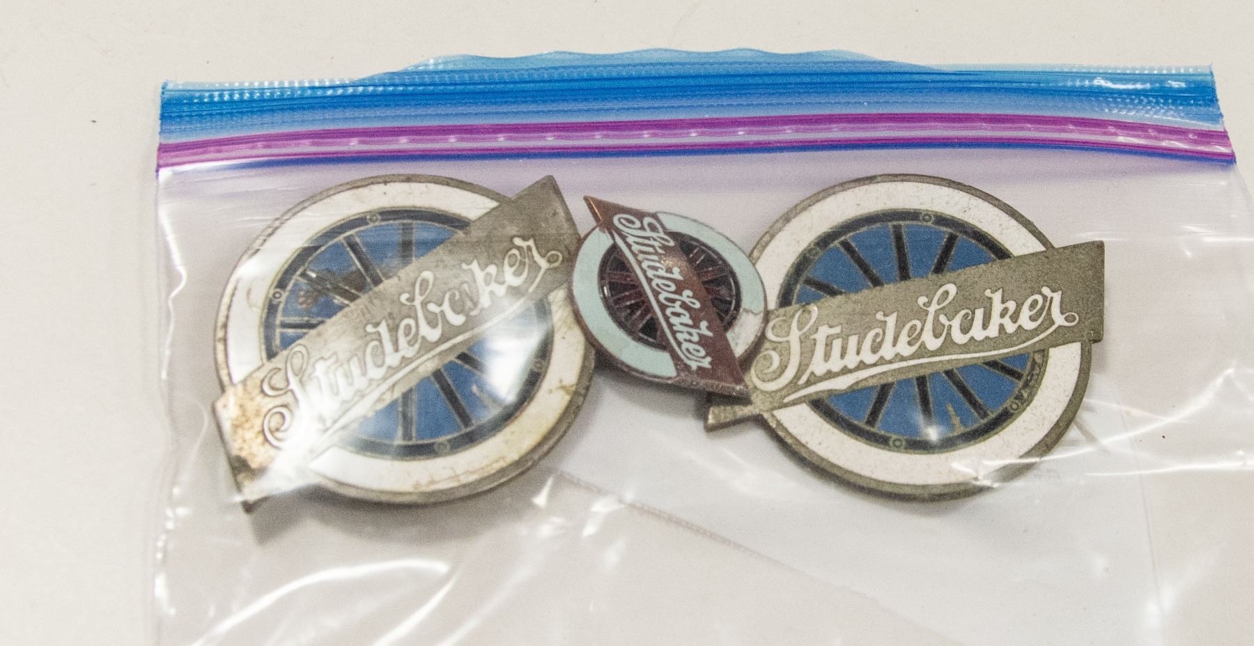 THREE STUDEBAKER GRILL BADGES - NEED FASTENERS