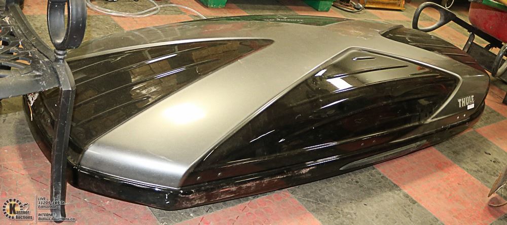 THULE CAR TOP CARRIER WITH RACK, COMES WITH KEYS
