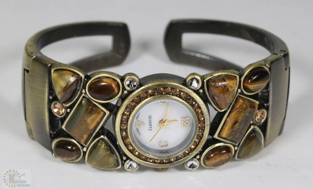 MULTI TIGER EYE STONES ON CUFF STYLE WATCH