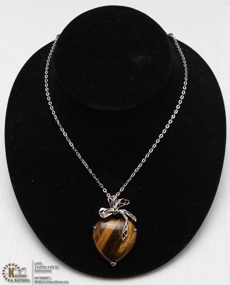 TIGERS EYE HEART PENDANT W/ 18" CHAIN