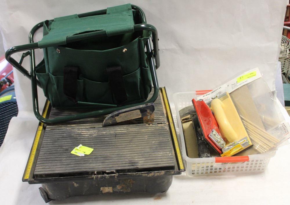 TILE SAW, DRYWALL SANDERS AND FOLDING STOOL