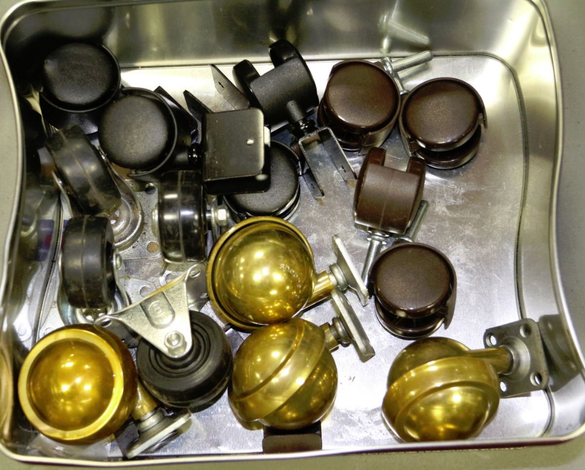 TIN WITH 16 ASSORTED CASTORS