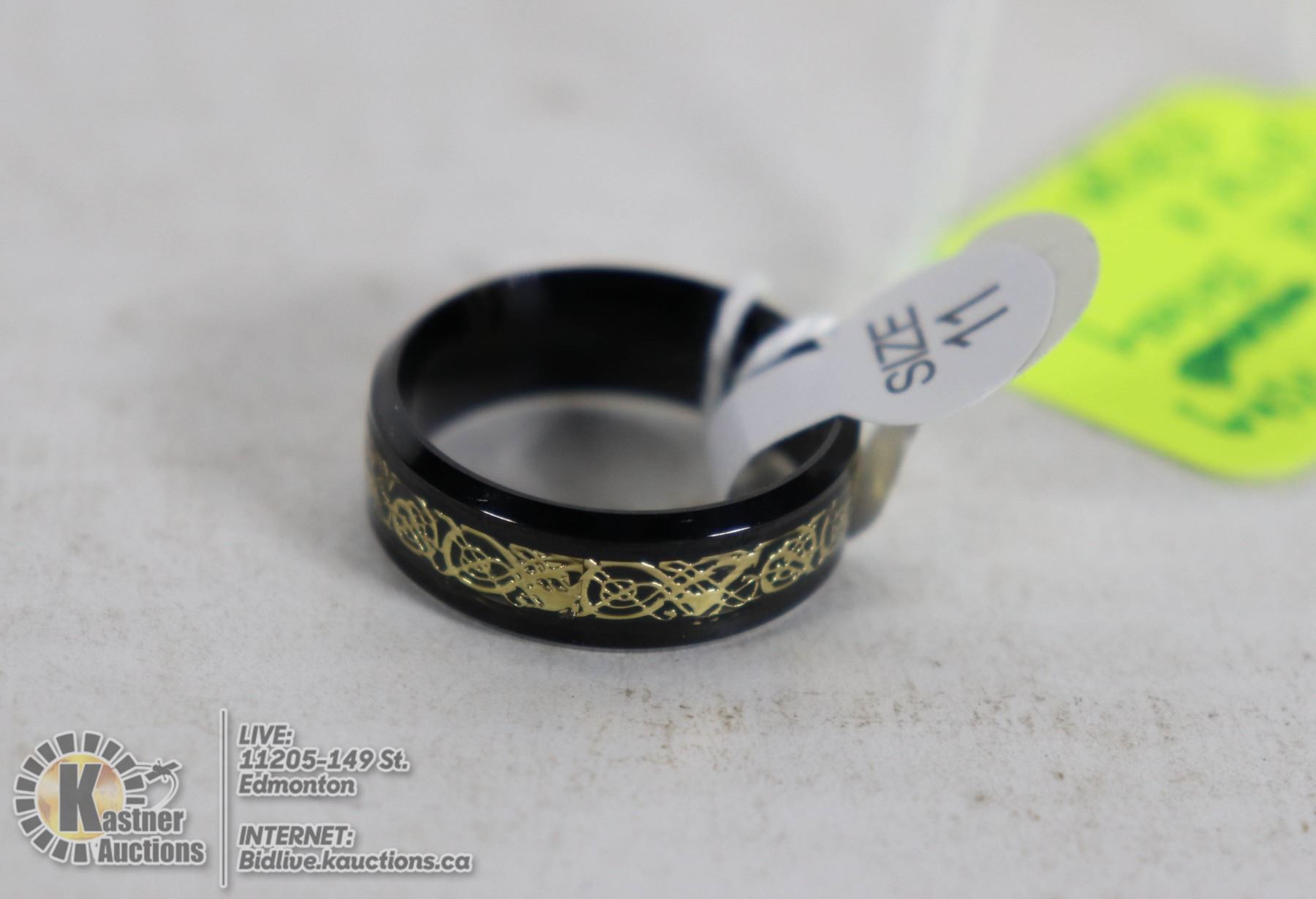 MENS TITANIUM RING. BLACK/ GOLD INLAY 5.8 GRAMS, SIZE 11.