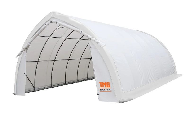 INDUSTRIAL 20' X 30' ARCH WALL PEAK CEILING STORAGE SHELTER WITH HEAVY DUTY 11 OZ PE COVER & DRIVE THROUGH DOORS, TMG-ST2031P (PREVIOUSLY ST2030P)