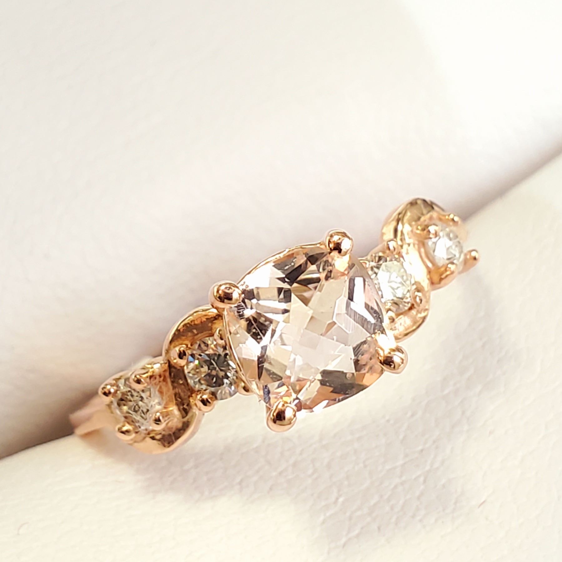 10K ROSE GOLD MORGANITE(1CT) 4 DIAMONDS(0.2CT) RING (~SIZE 6.25) (~WEIGHT 1.6G), MADE IN CANADA