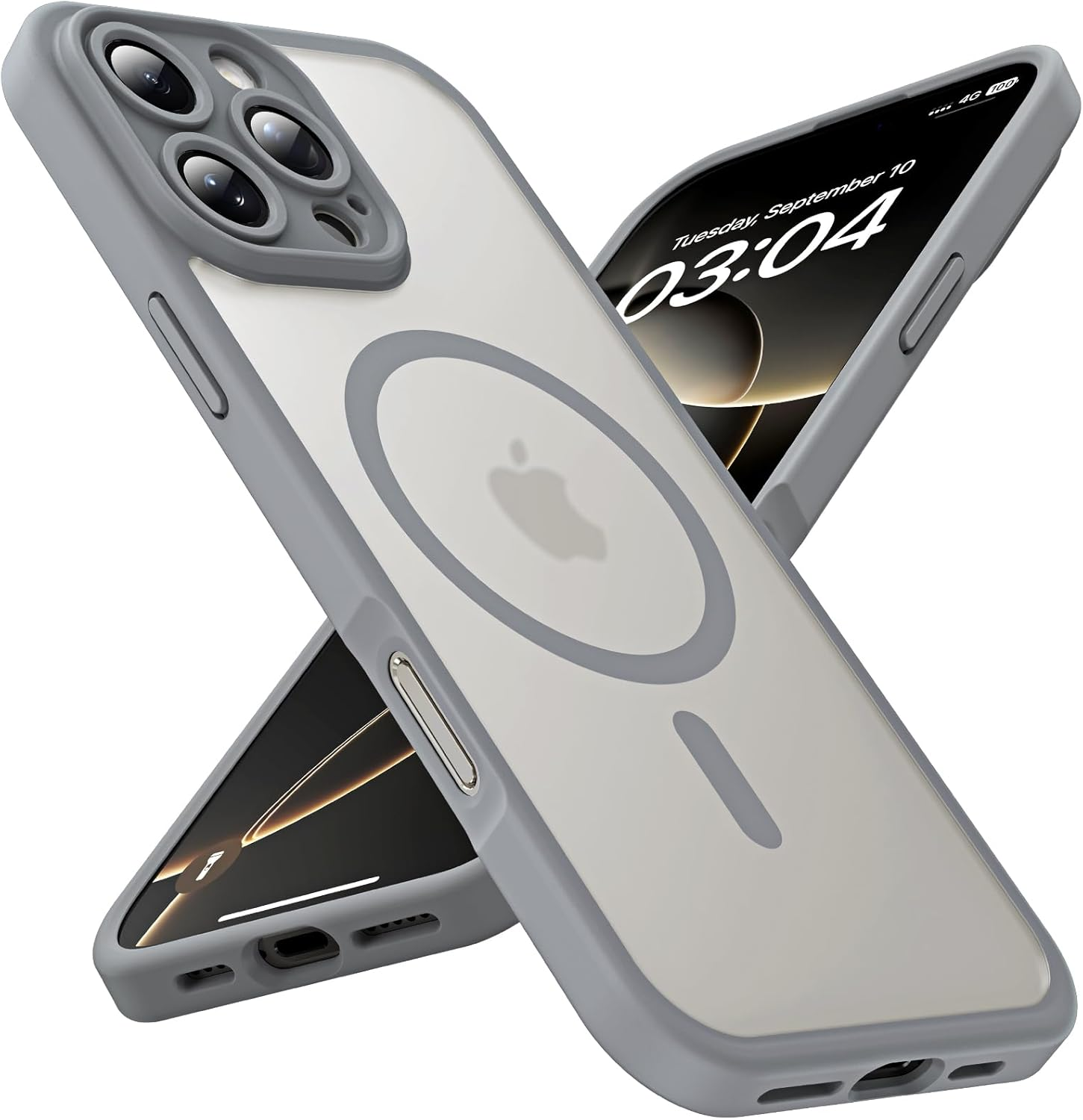 TOCOL MAGNETIC FOR IPHONE 16 PRO CASE, UPGRADED FULL CAMERA PROTECTION, COMPATIBLE WITH MAGSAFE, DROP PROTECTION, TRANSLUCENT MATTE BACK BUMPER FOR IPHONE 16 PRO 6.3-INCH (GRAY)