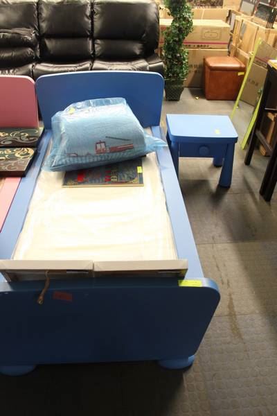 TODDLER BED W/ 1 NIGHT STAND ON CHOICE: BLUE