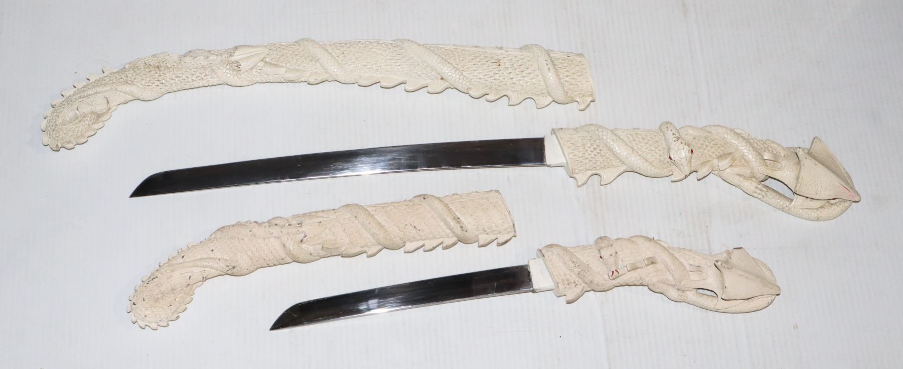 SMALL CHIP TO SMALLER SWORD DRAGONS HEAD. BLADES ONLY ARE 9" AND 15"