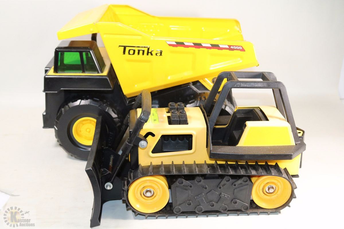 TONKA TRUCK WITH VINTAGE BULL DOZER