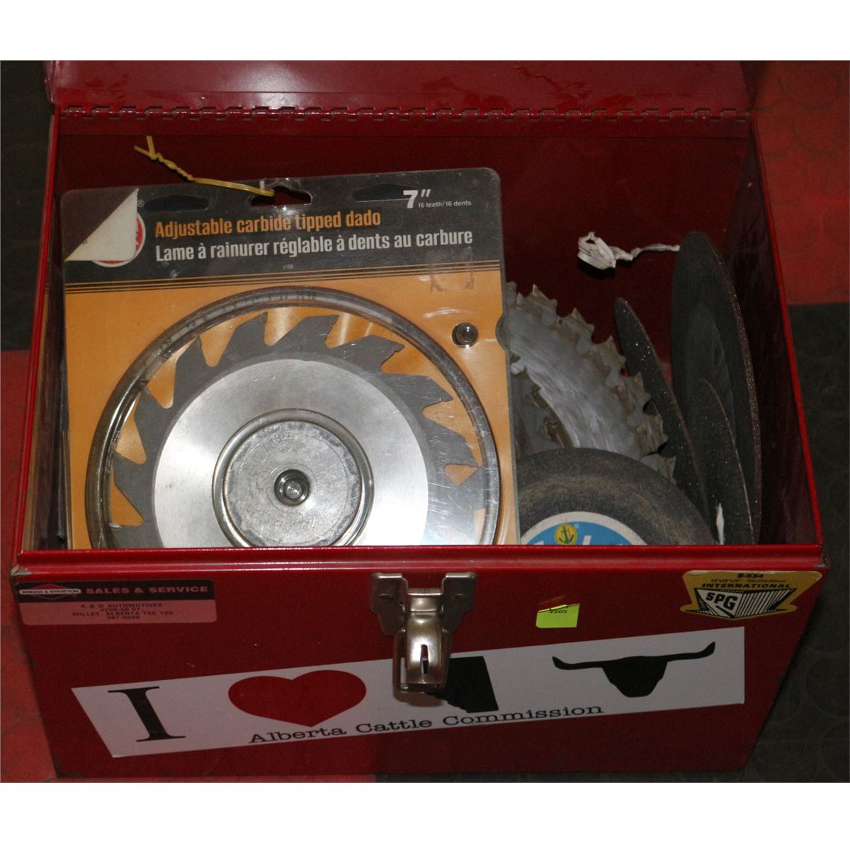 TOOL BOX W/ SAW BLADE AND GRINDING DISC