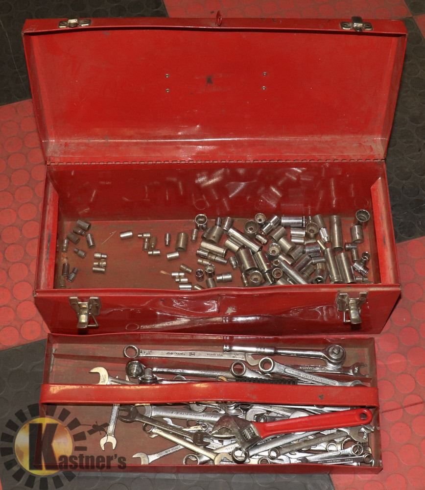 TOOL BOX WITH CONTENTS INCL WRENCHES & SOCKETS