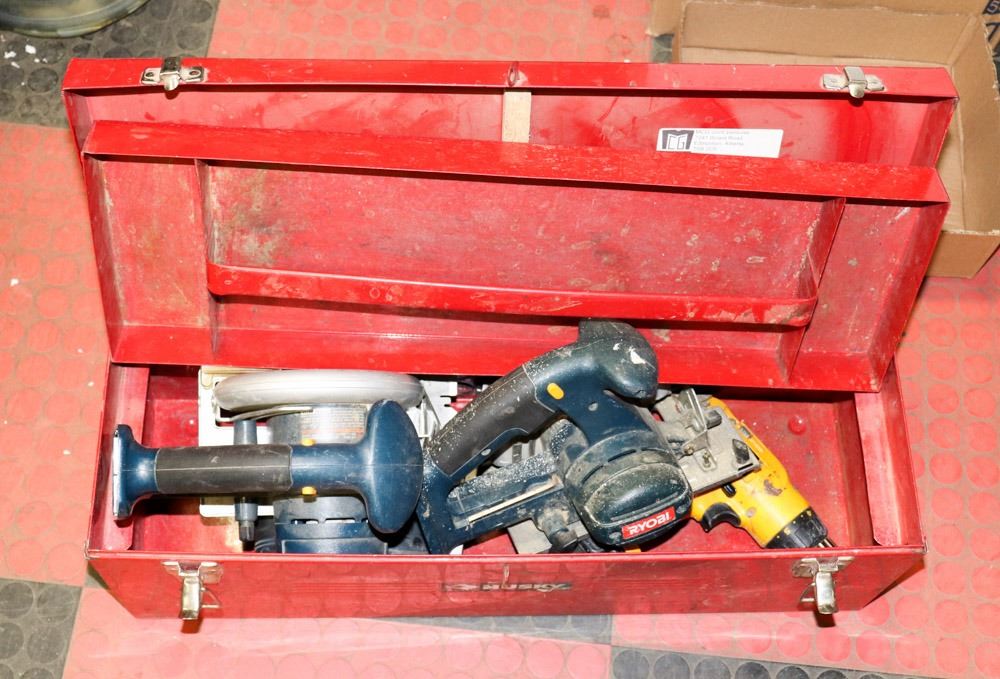 TOOL BOX WITH RYOBI SAWS NO CHARGER