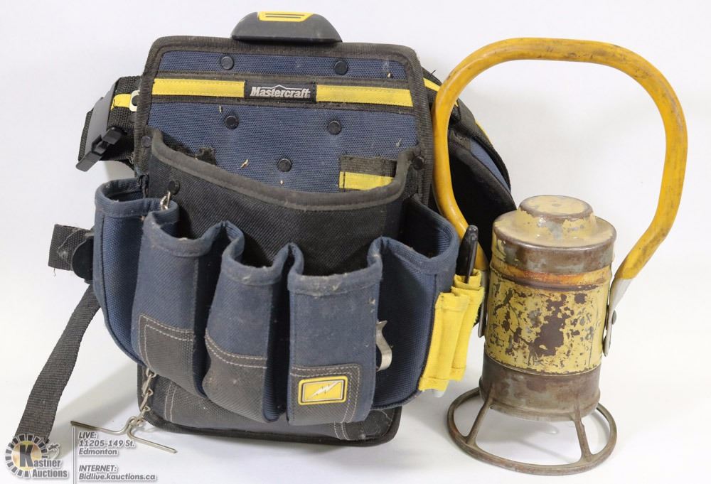 TOOL SADDLE & VINTAGE HANGING WORK LIGHT
