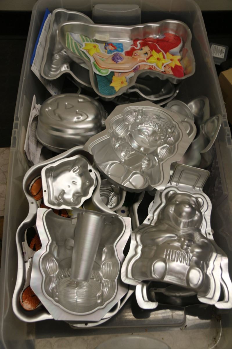 TOTE FULL OF ASSORTED THEMED BAKING SHEETS