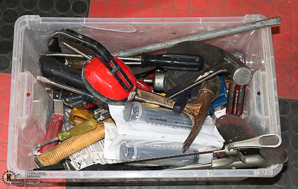 TOTE OF ASSORTED MISCELLANEOUS TOOLS