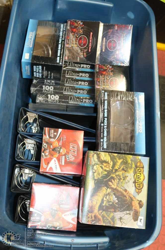 DISPLAYS, EMPTY BINDERS, 500 PAGES OF ULTRA PRO PLATINUM CARD SHEETS, AND MORE.
