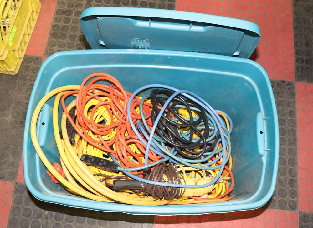 TOTE OF ELECTRICAL CORDS - SOME COMMERCIAL GRADE