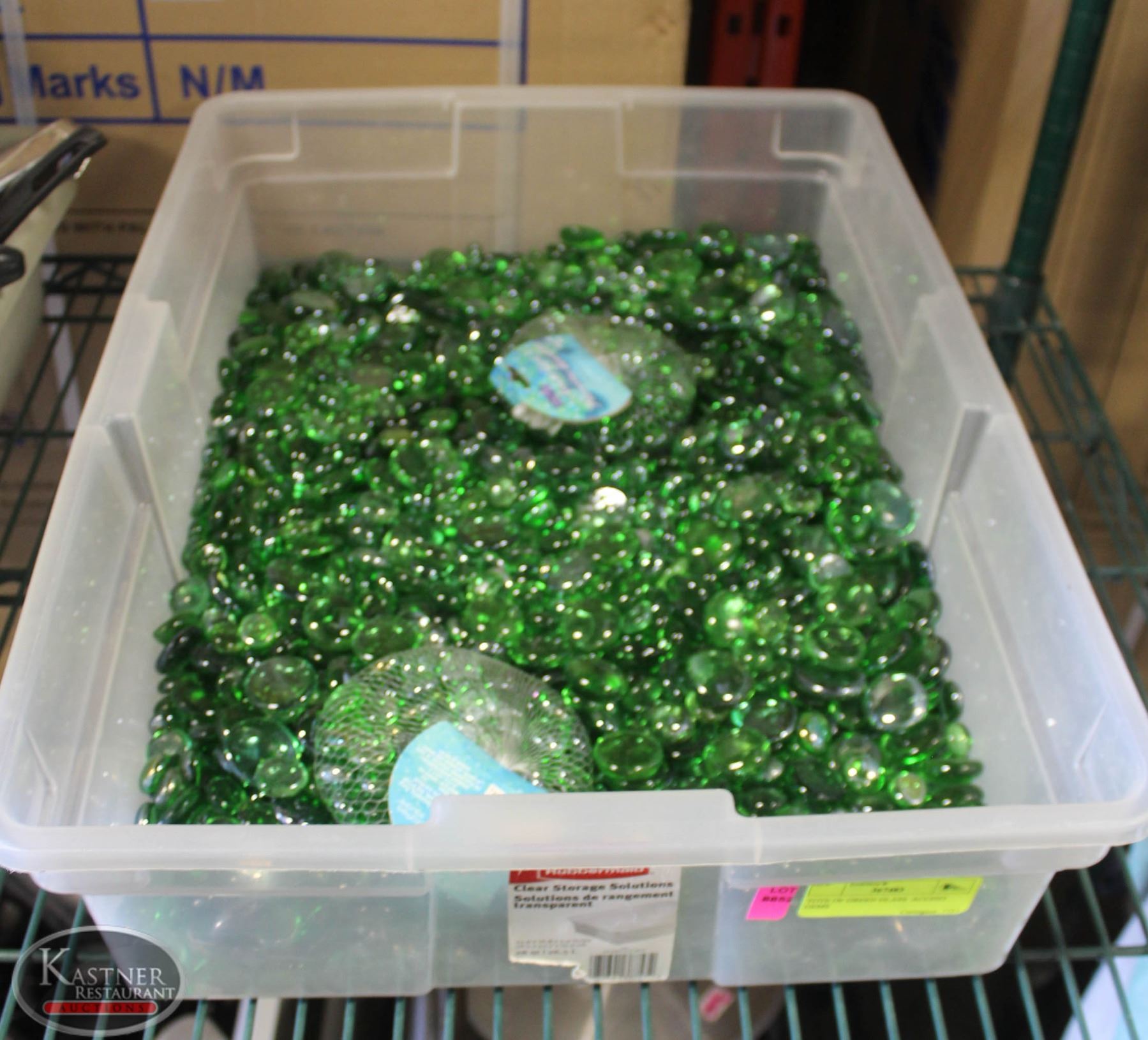 TOTE OF GREEN GLASS ACCENT GEMS
