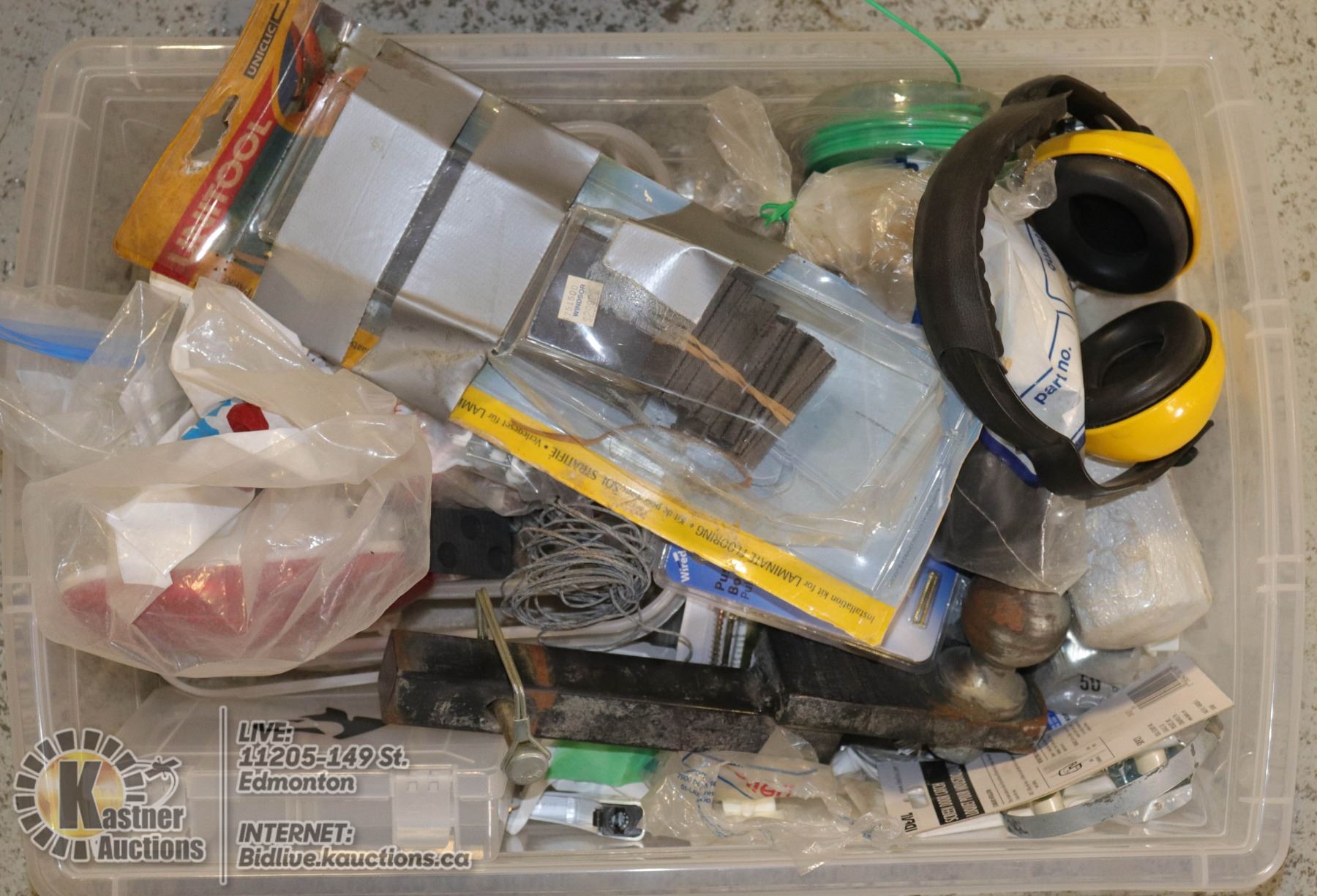TOTE OF MISC SHOP SUPPLIES WITH QUAD HITCH- NONE