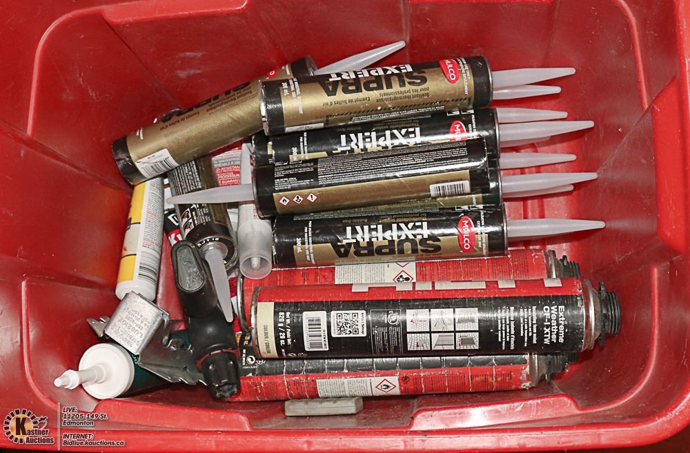 TOTE OF NEW HILTI FOAM, MULCO SEALANT AND DAP