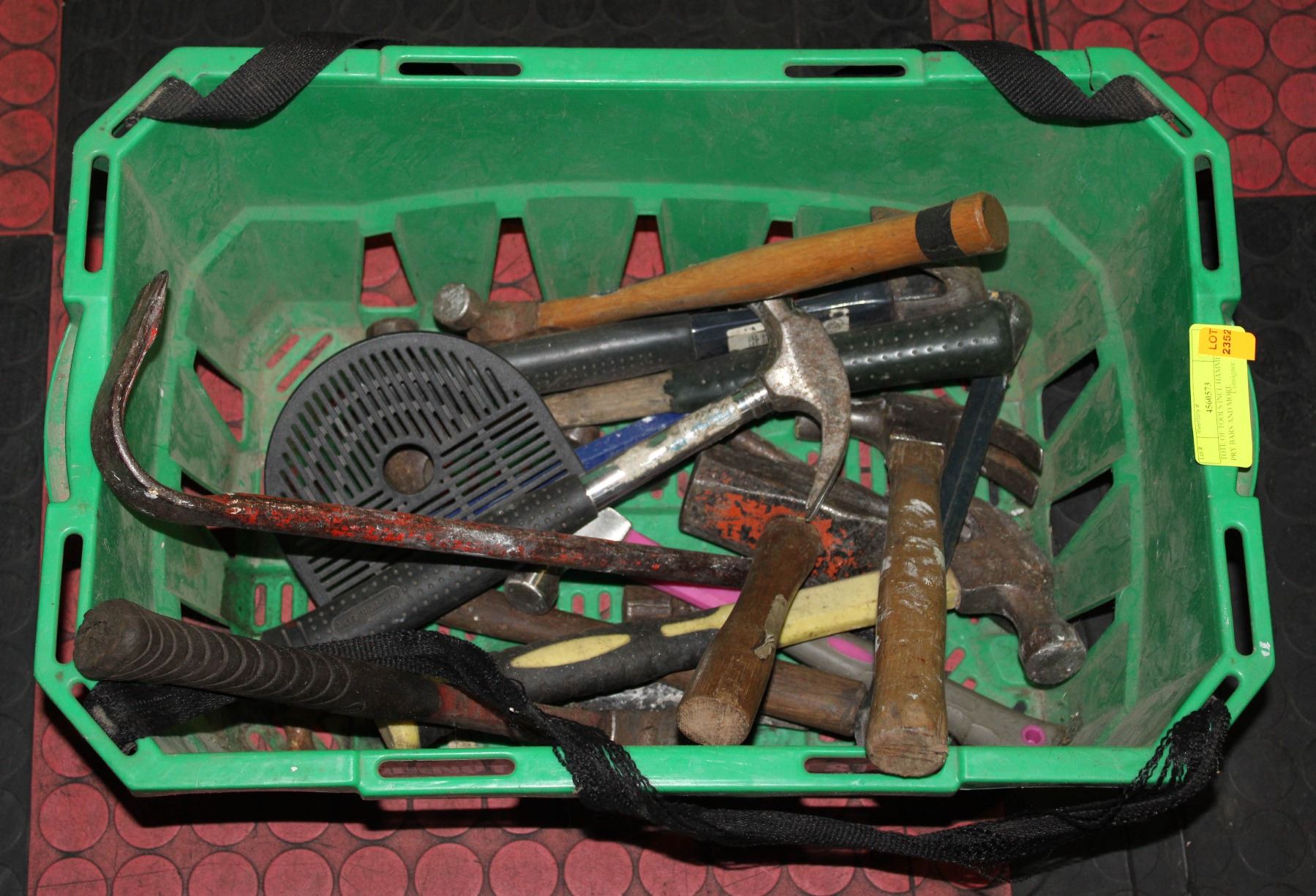 TOTE OF TOOLS INCL HAMMERS PRY BARS AND MORE