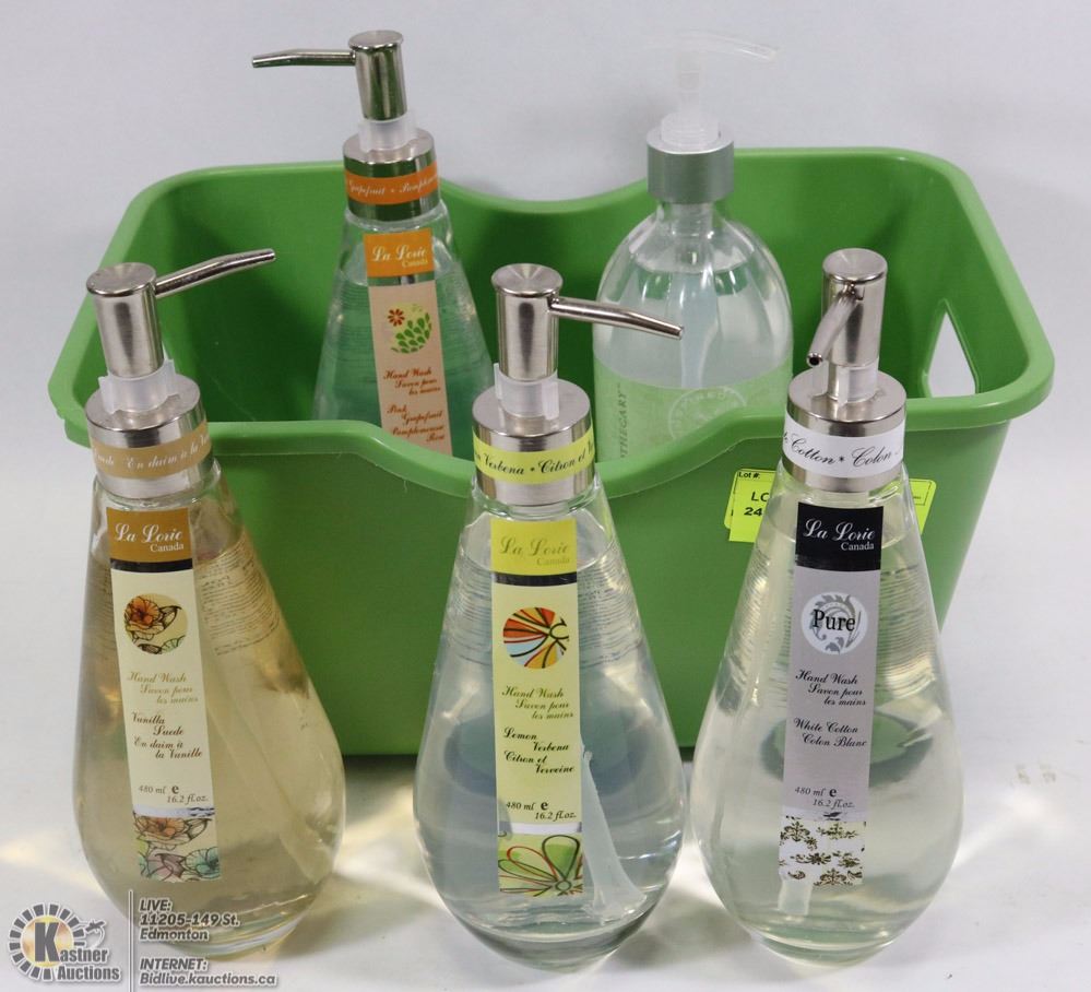 TOTE WITH 5  ASSORTED LUXURY HAND WASH SOAPS