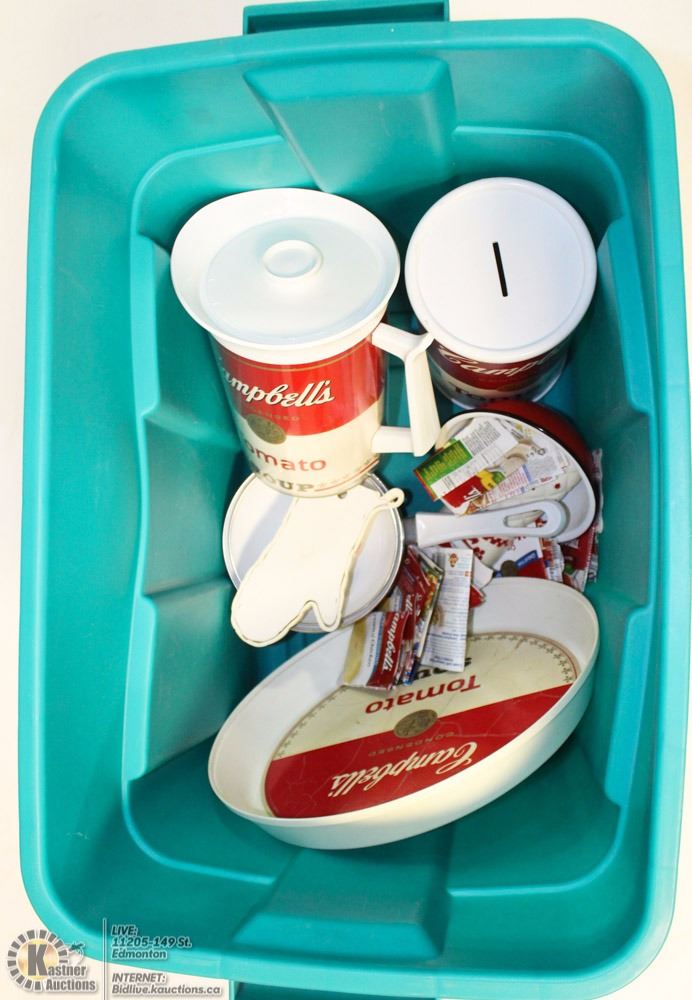 TOTE WITH ASSORTED CAMPBELL SOUP COLLECTIBLES