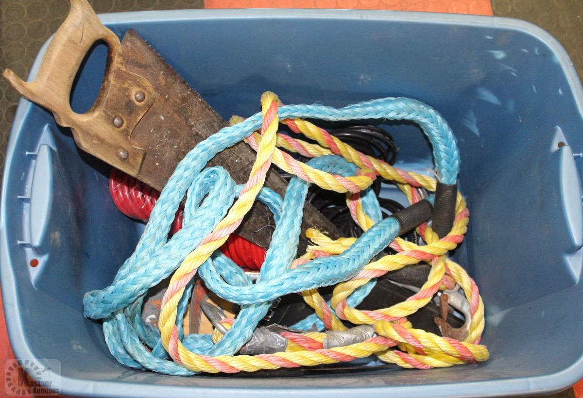 TOTE WITH ASSORTED HAND SAWS AND STRAPS