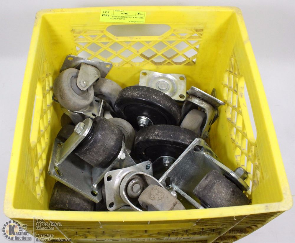 TOTE WITH COMMERCIAL CASTORS, SOME ARE SWIVEL