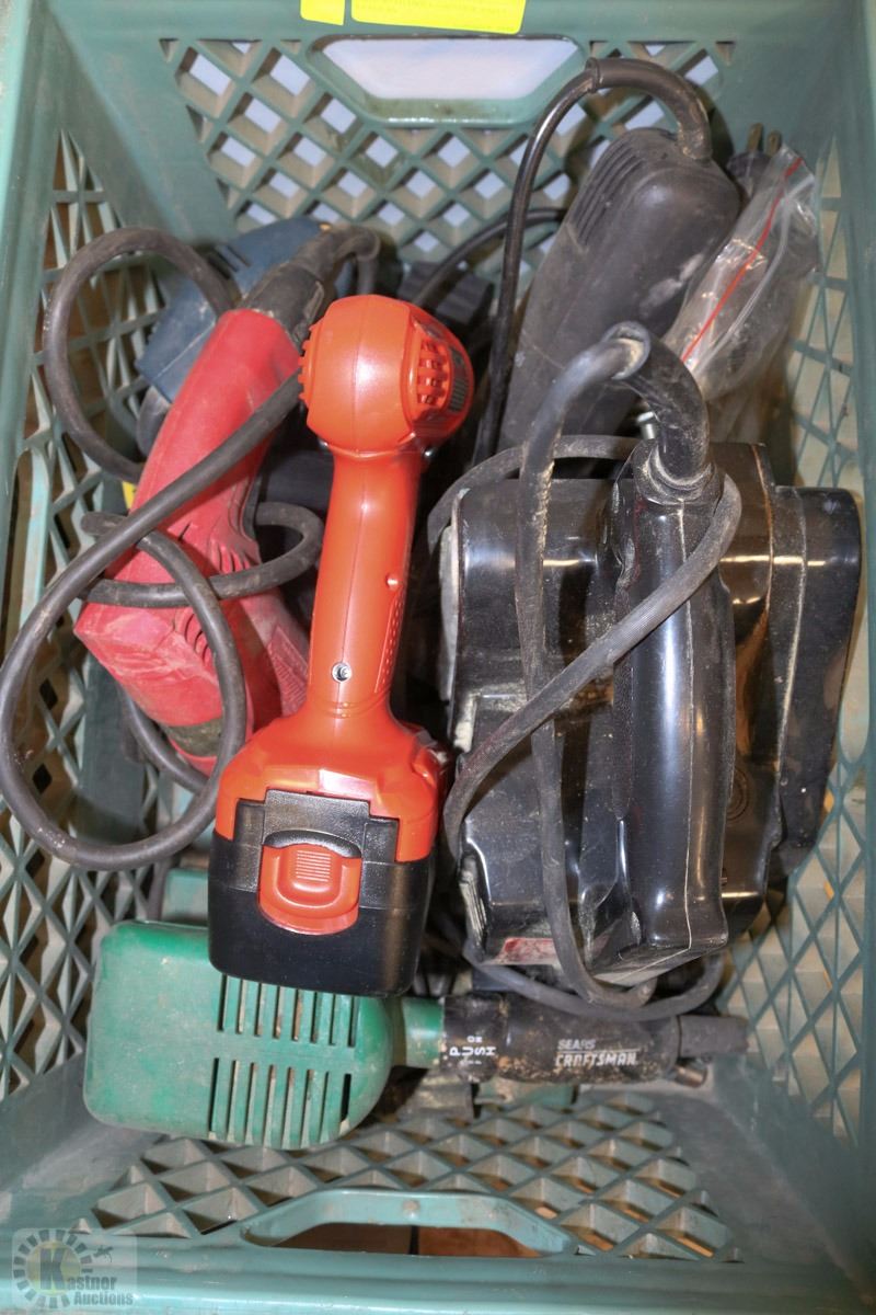 TOTE WITH DRILL, GRINDER AND 3 SANDERS