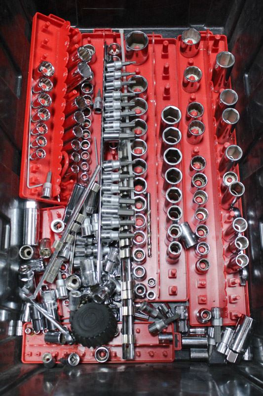 TOTE WITH LARGE ASSORTMENT OF SOCKETS