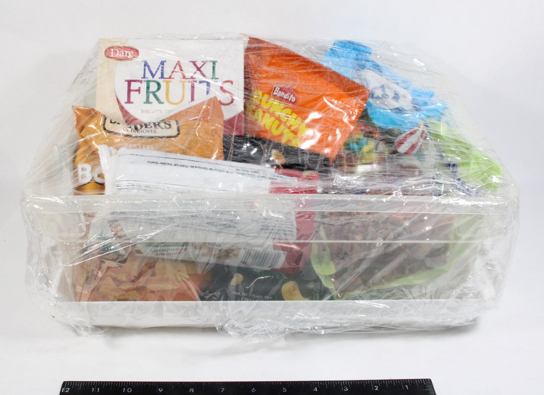 TOTE WITH LID FULL OF COOKIES AND MORE