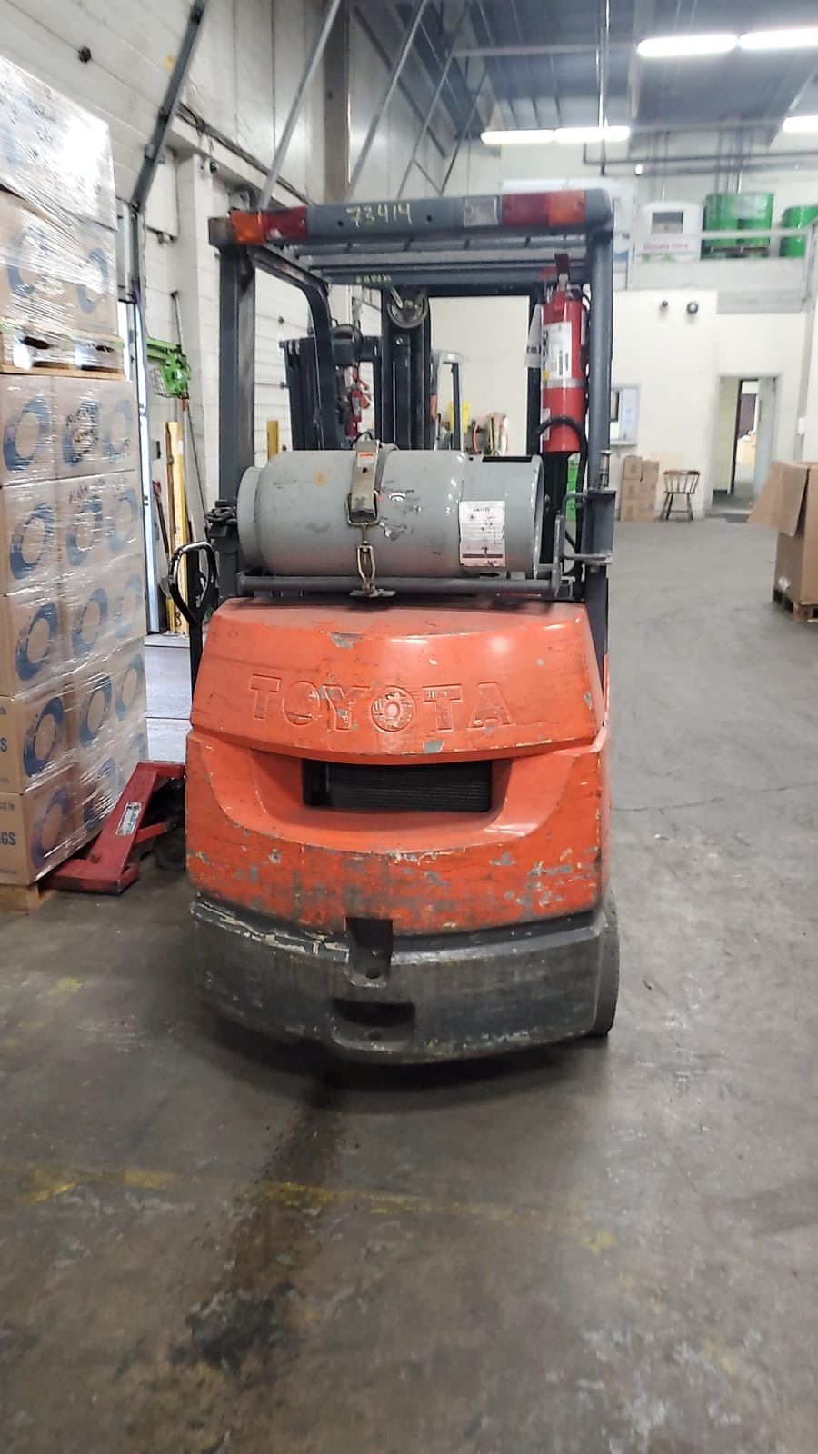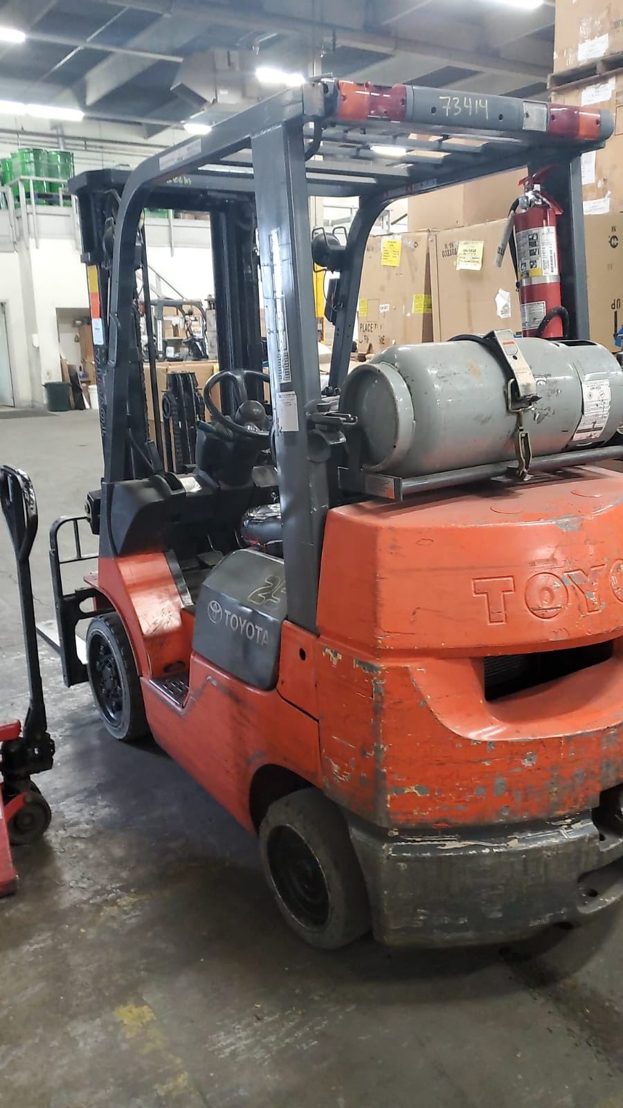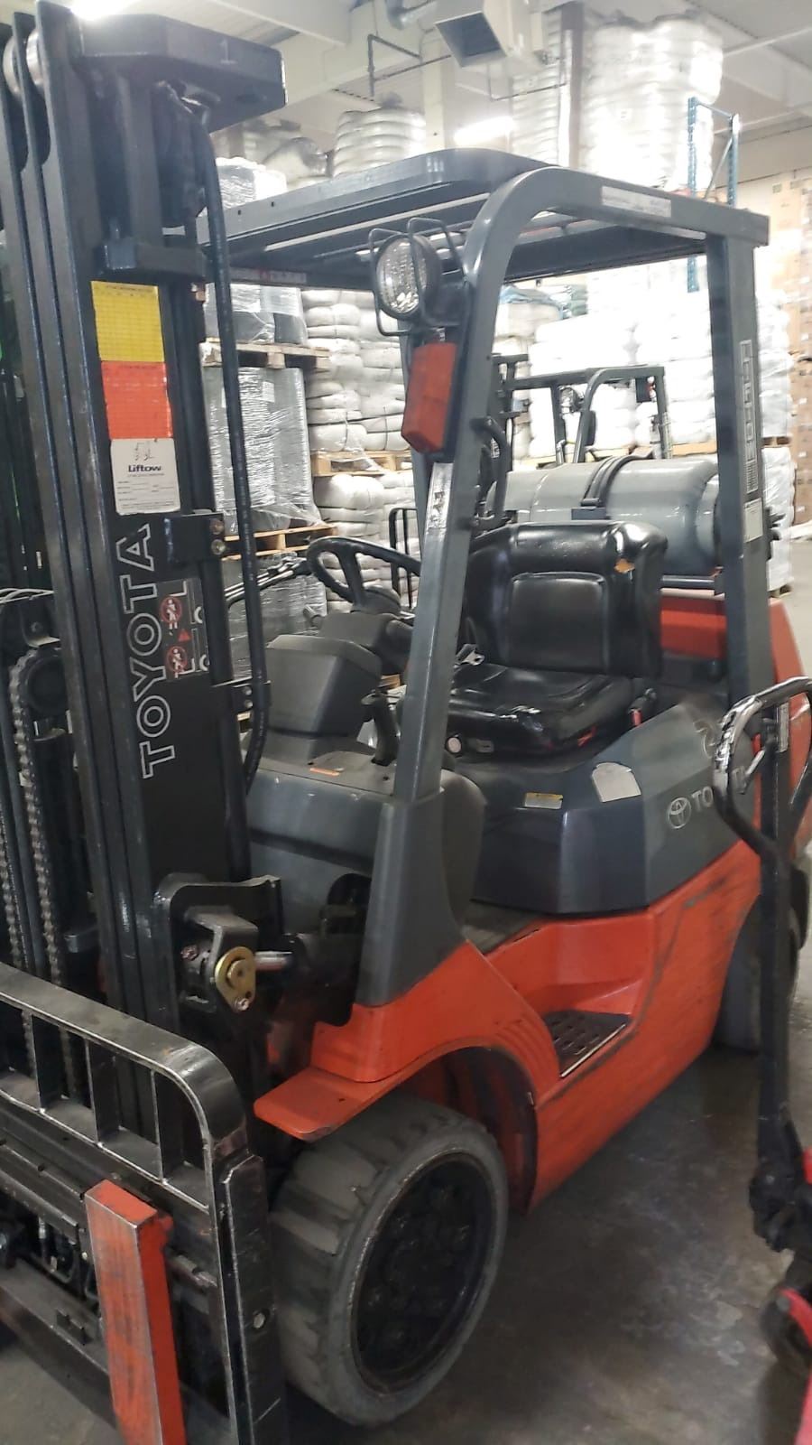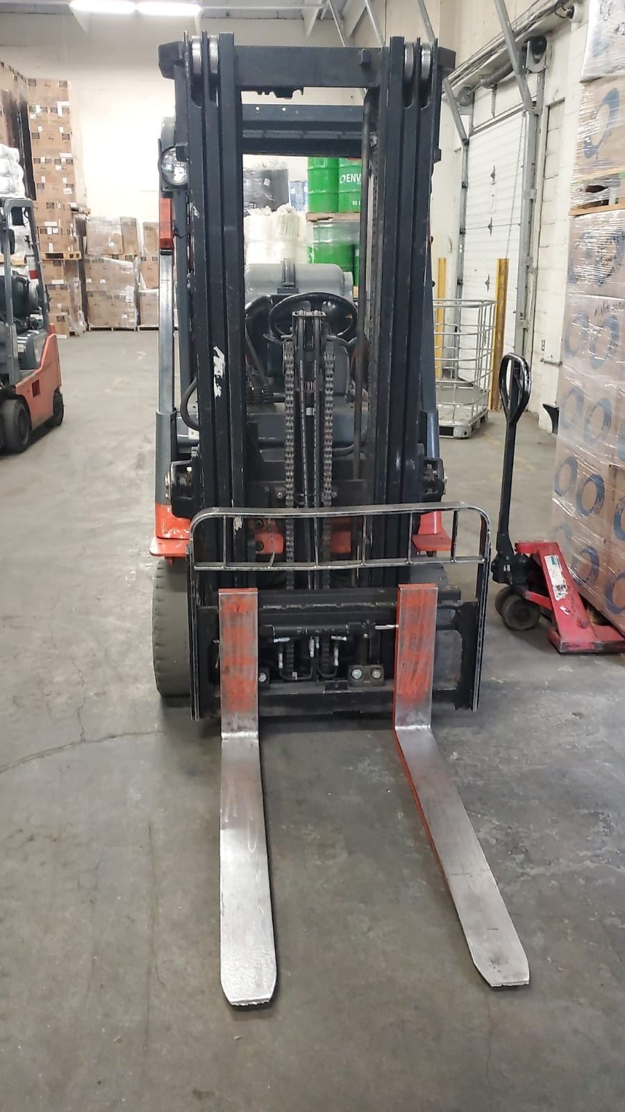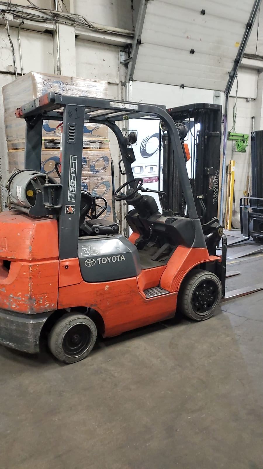 TRIPLE MAST 198" LIFT, COLLAPSED MAST HEIGHT 82", SLIDE SHIFT, AUTO LEVELING MAST, 42" FORKS, CUSHION TIRE. REGULAR MAINTENANCE DONE ON THIS UNIT, SELLER HAS RECORDS. MARKED #1.