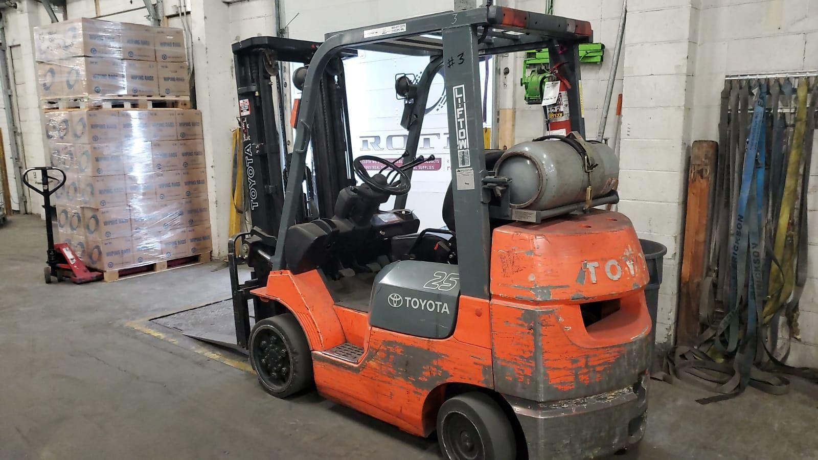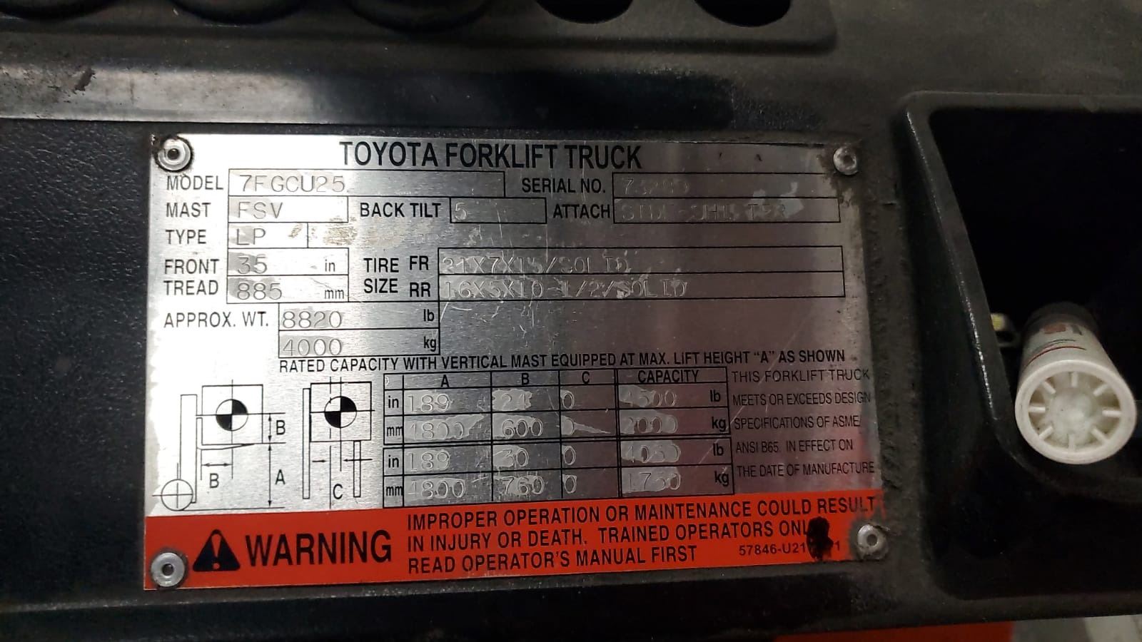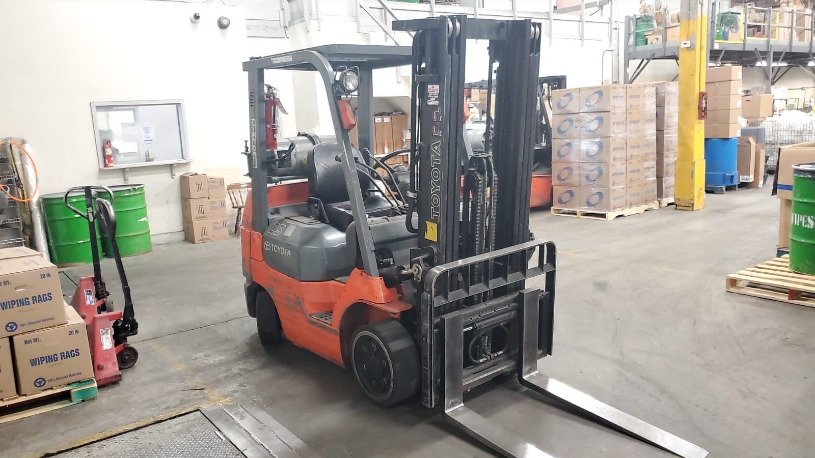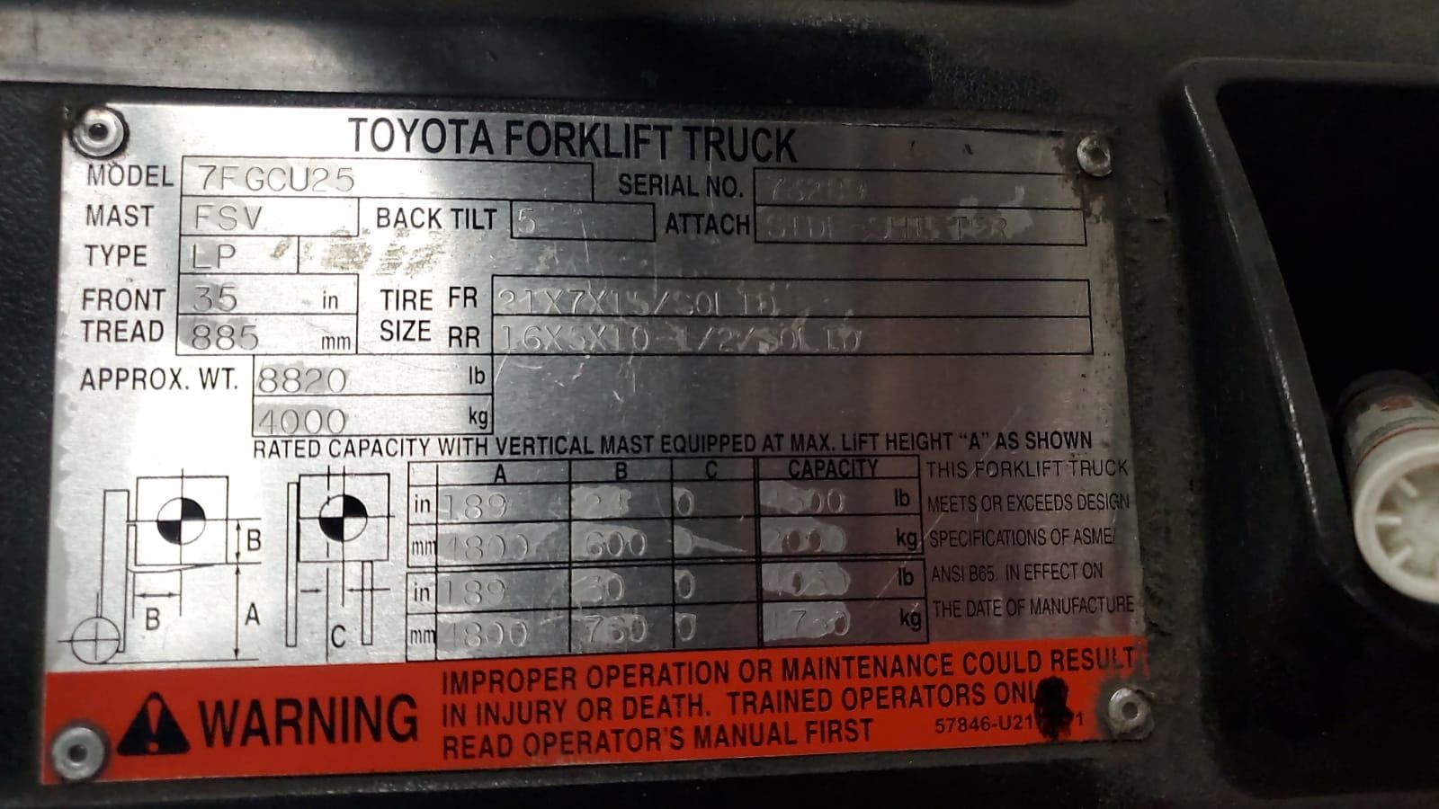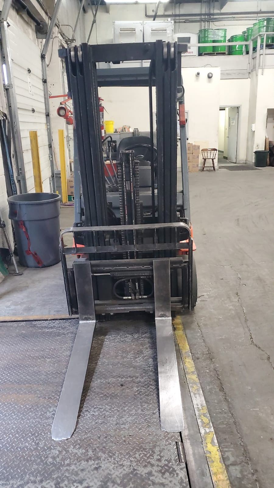 TRIPLE MAST 198" LIFT, COLLAPSED MAST HEIGHT 82", SLIDE SHIFT, AUTO LEVELING MAST, 42" FORKS, CUSHION TIRE. REGULAR MAINTENANCE DONE ON THIS UNIT, SELLER HAS RECORDS. MARKED #3.