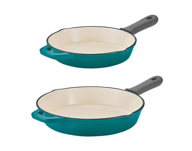 TRAMONTINA ENAMELED CAST IRON SKILLETS, 2-PIECE