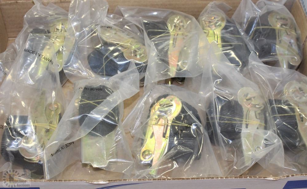 TRAY LOT OF NEW WRAP AROUND RATCHET STRAPS