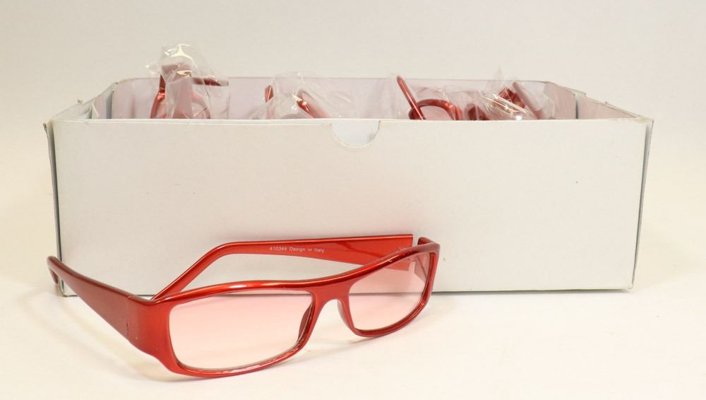 TRAY OF 12 DESIGNER STYLE GLASSES; RED FRAMES